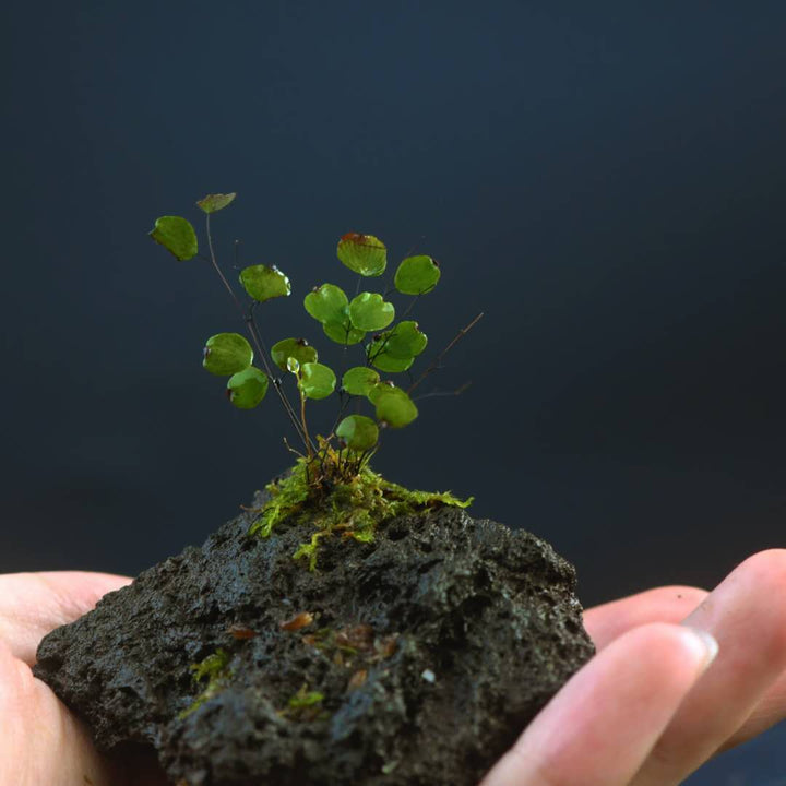 小鐵線蕨以其獨特的小型化形態和石灰巖生境適應性,成為蕨類植物中的特殊類群。但其養護難度較高,需通過模擬自然條件並註重細節管理才能使其成功存活。日本茶道中,小鐵線蕨常作為「茶室蕨」,寓意靜謐與禪意,適合置於半陰環境,搭配陶盆或竹編花器,營造自然氛圍。