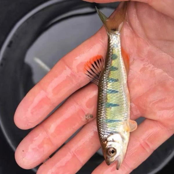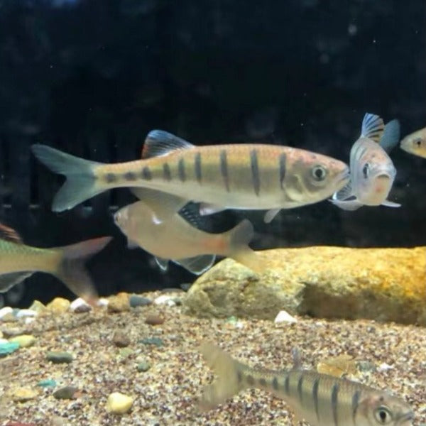 麗紋低線鱲群遊性極好,發色鮮豔,燈光光下通體金色,魚鰭紅色。而且沒有攻擊性是非常適合混養的原生魚。
