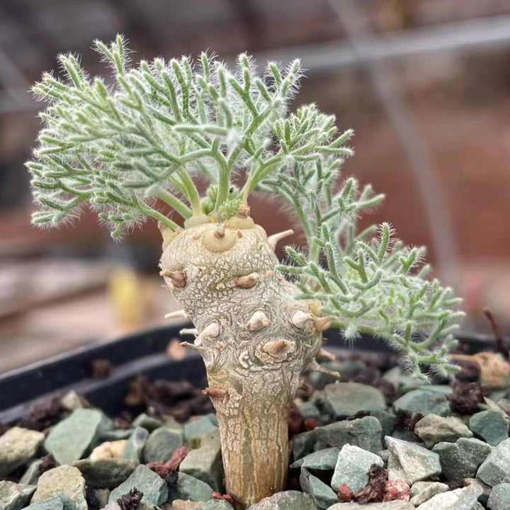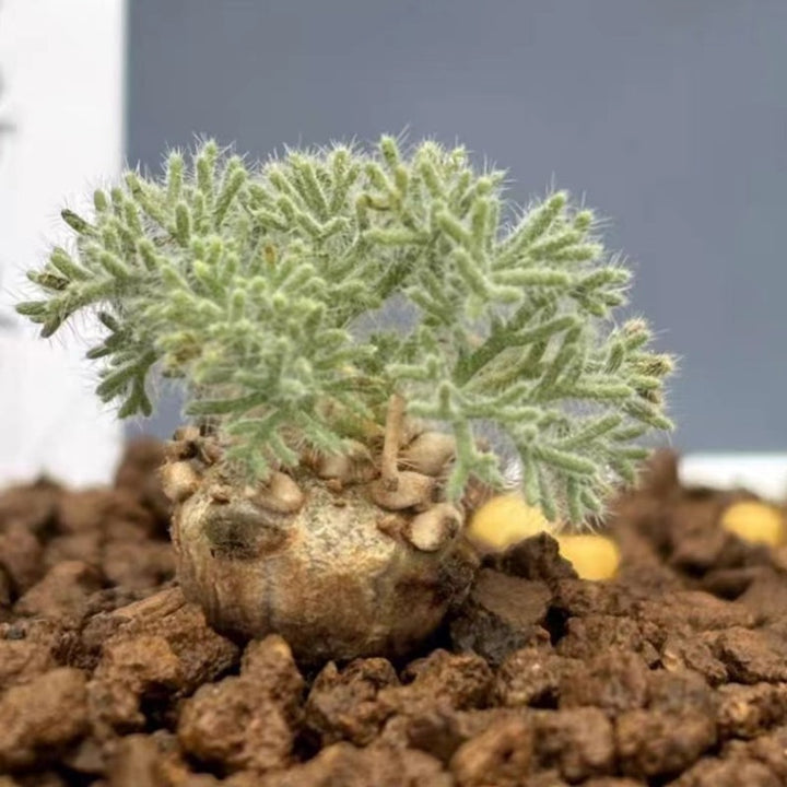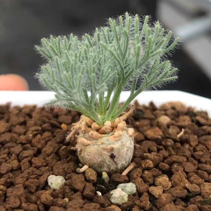 白皮月界牻牛兒苗科鳳嘴葵屬爲多年生矮灌木。灰黃色薯狀肉質莖,表麵蠟質,樹幹和樹枝呈木質狀;葉片常呈掌狀或羽狀分裂。原産於非洲,在中國西南部有栽培;白皮月界常生長於灌木叢、半沙漠地區;喜光照、耐旱、忌高溫暴曬、不耐寒、不耐澇。
