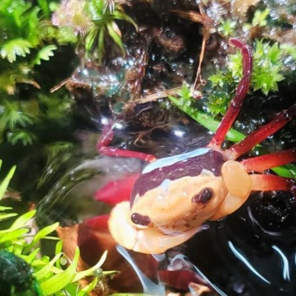 三原忍者蟹是一種色彩鮮豔的小型兩栖蟹,原產於婆羅洲。 三原忍者蟹整體以紅黃藍三色搭配十分特別。