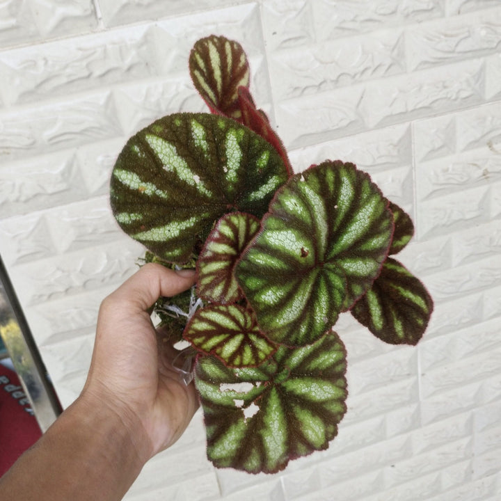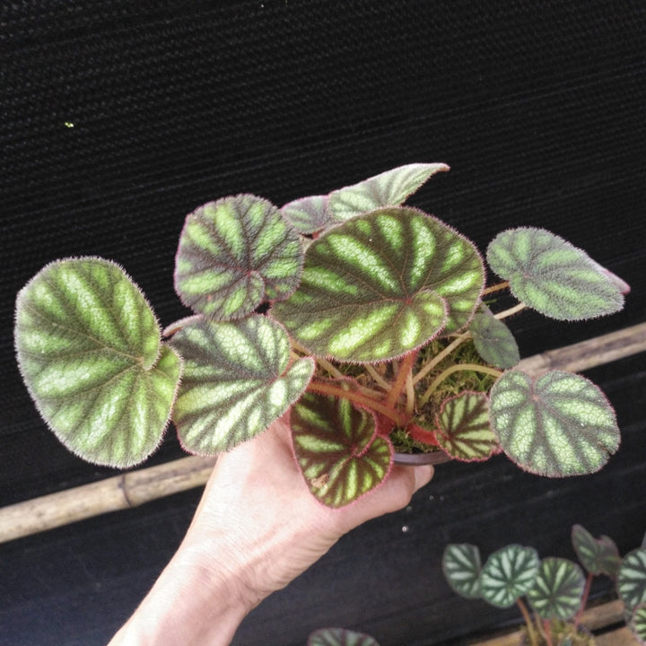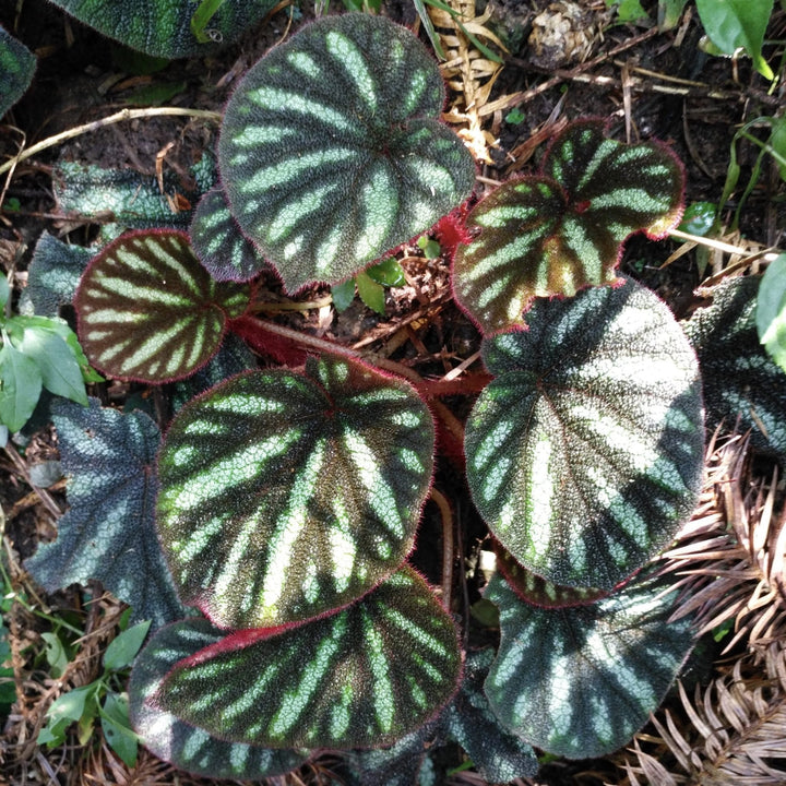 The leaves are amazing with their red and green venation and white marbling. undersides and new growth are a endowed with bright red hairs.