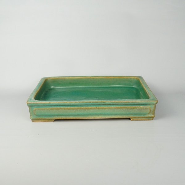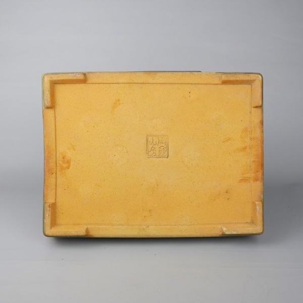 中古水盤 山房 切立正方 鉢 水石 盆栽 花器 釉薬 中古 m1198402299