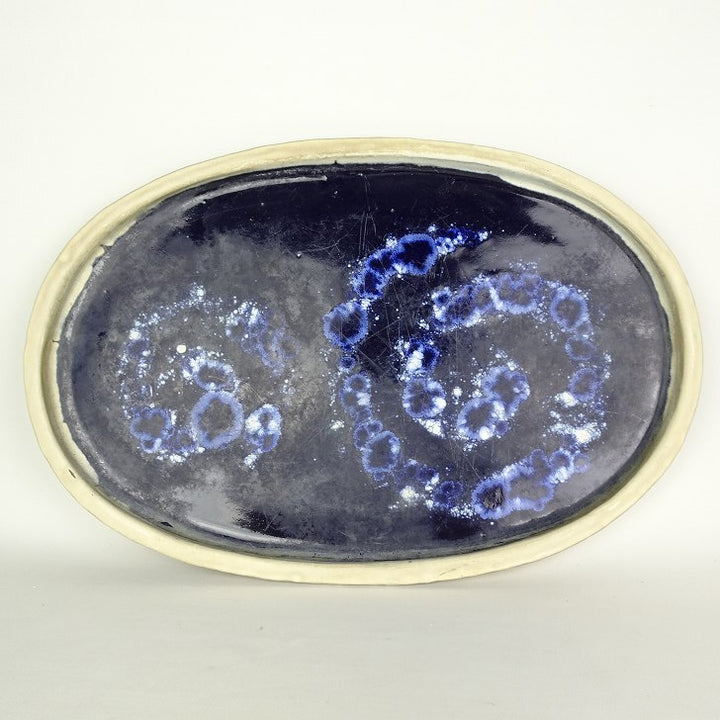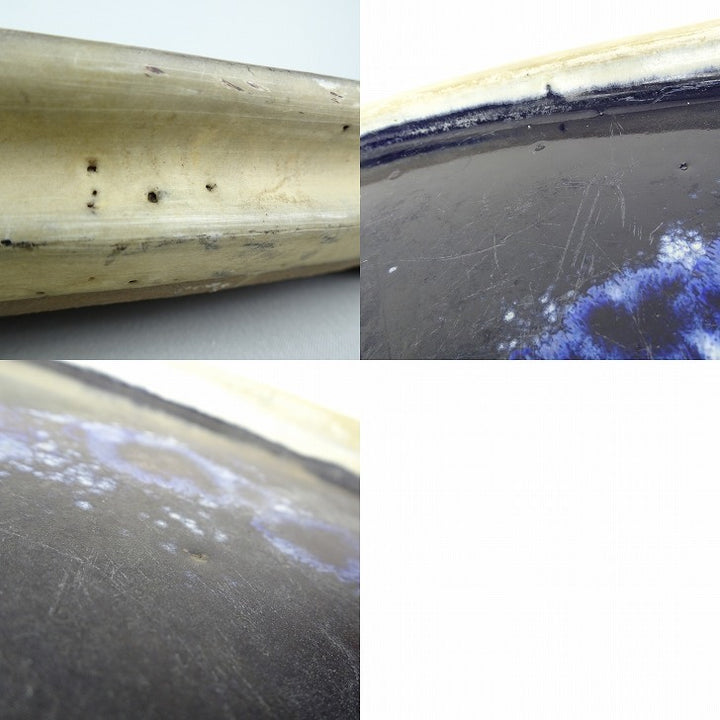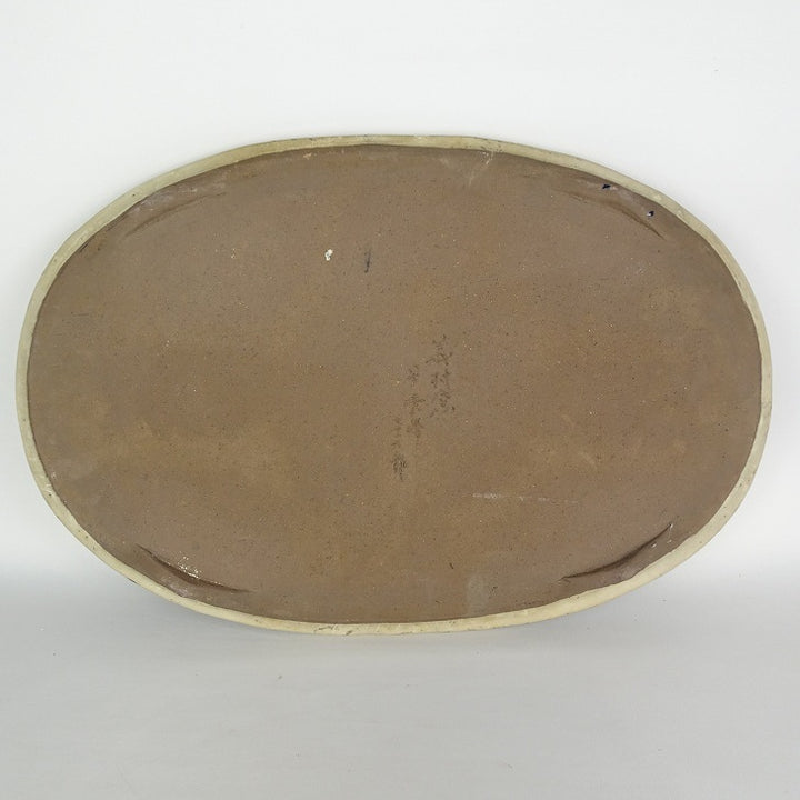 【中古】水盤 義村秀峰 大型 長辺 約 62cm 楕円鉢 水石 盆栽 花器 釉薬 現品 中古 品名水盤 (義村秀峰)...