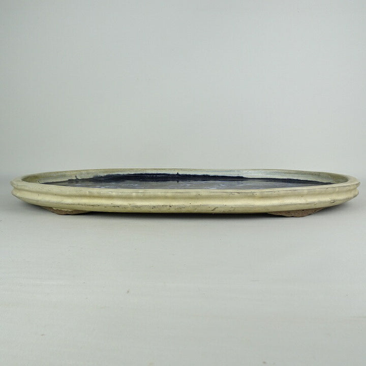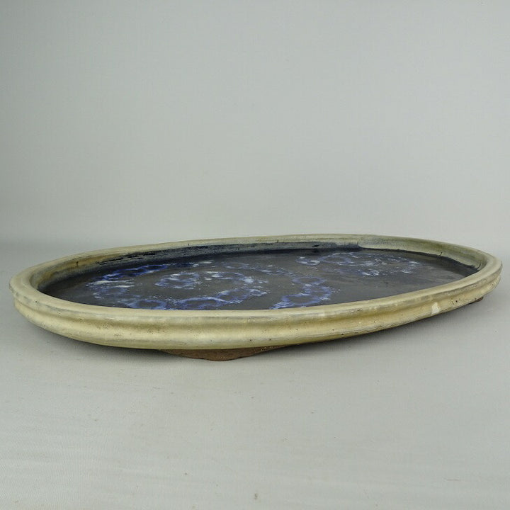 中古水盤 義村秀峰 大型 長辺 約62cm 楕円 鉢 水石 盆栽 花器 釉薬 中古 g1198418133