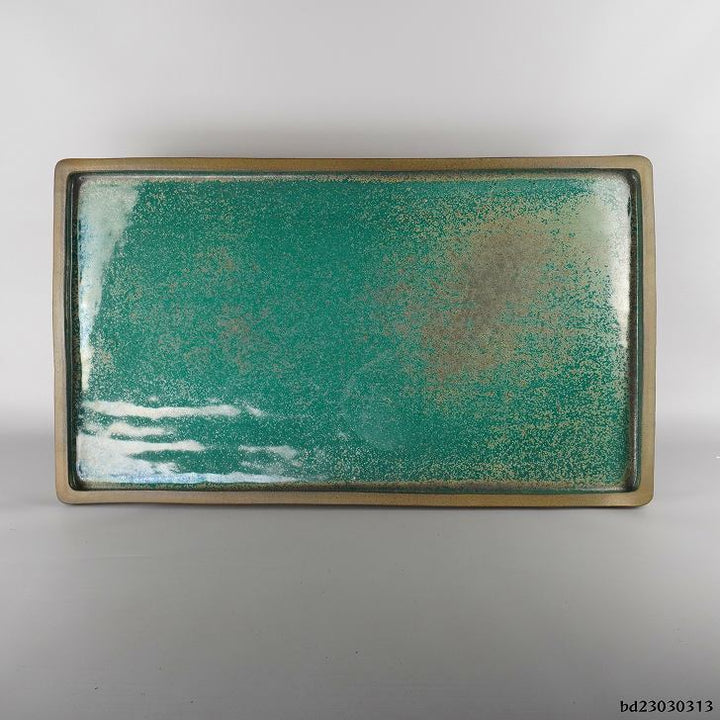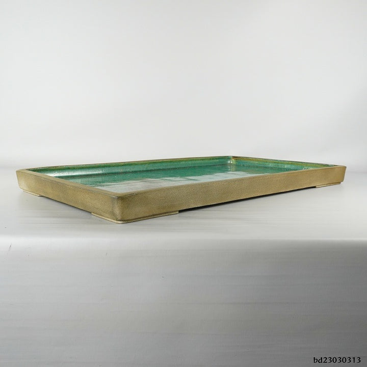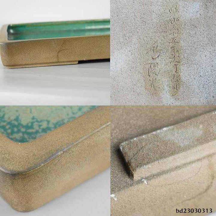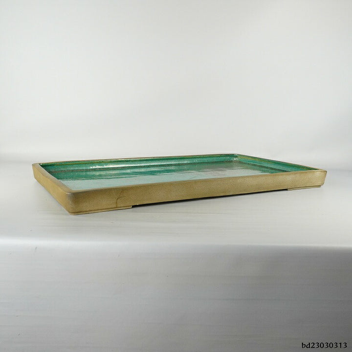 【中古】水盤 鴻陽造 長辺 約61.5cm 長方 鉢 水石 盆栽 花器 釉薬 現品 中古 商 品 名水盤 (鴻陽) サ イ ズ高さ 約4.2センチ...
