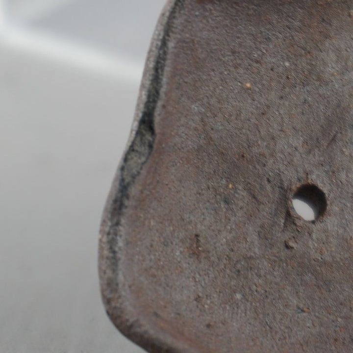 中古盆栽鉢 一蒼作 小型 長辺 約11.3cm 変形 楕円鉢 泥物 中古鉢 r1198408166