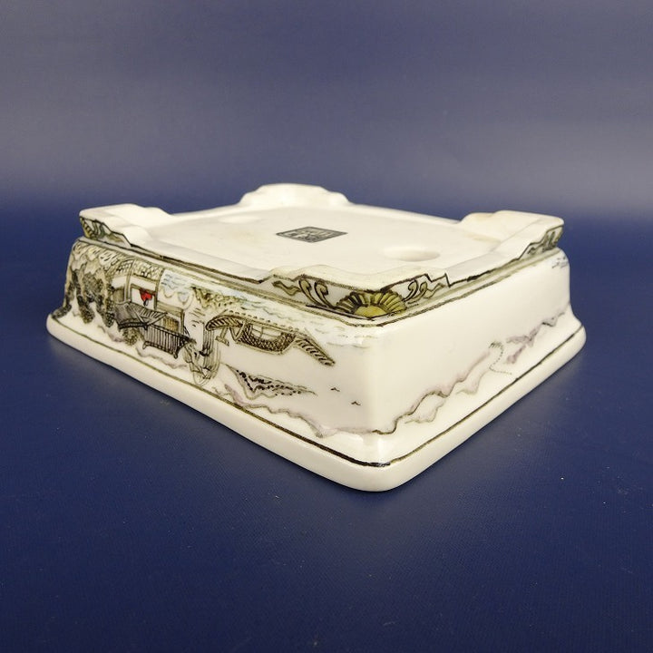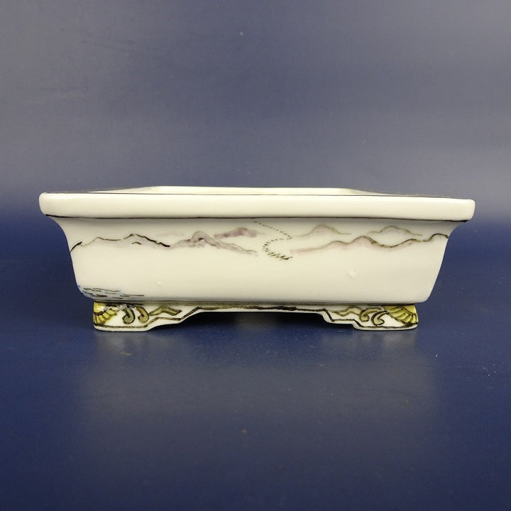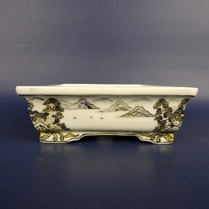 【中古】盆栽鉢 上州勝山 箱付 小型 長辺 約12cm 長方鉢 外縁 絵鉢 人物 風景 現品 中古鉢 品名上州勝山 (箱付)...