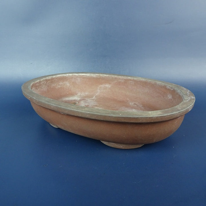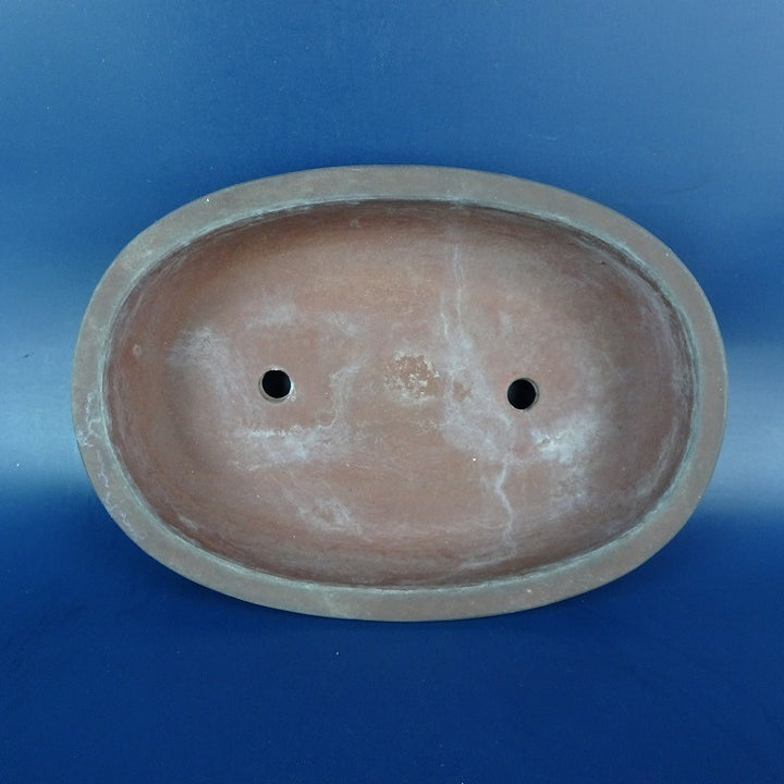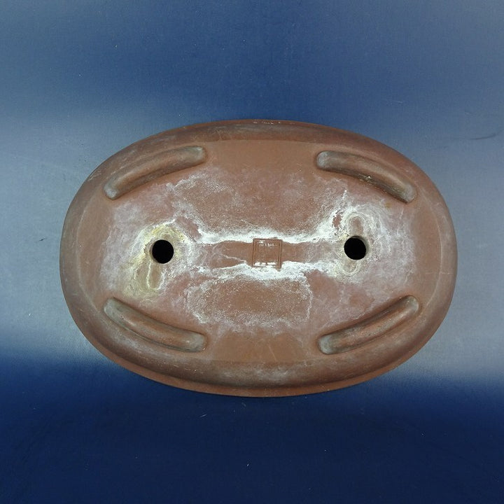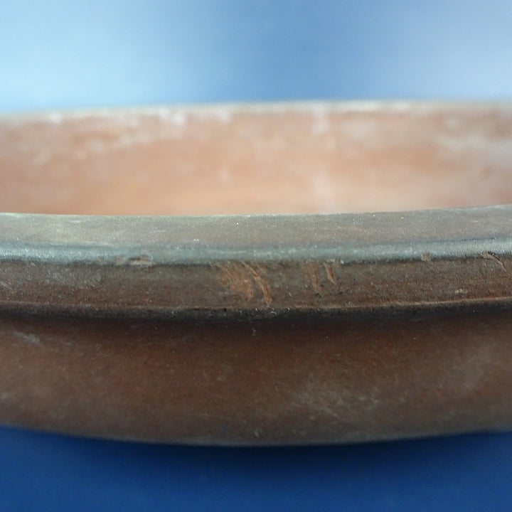 中古盆栽鉢 中国宜興 小型 長辺 約19.5cm 楕円鉢 外縁 泥鉢 中国鉢 中古鉢 u1198432101