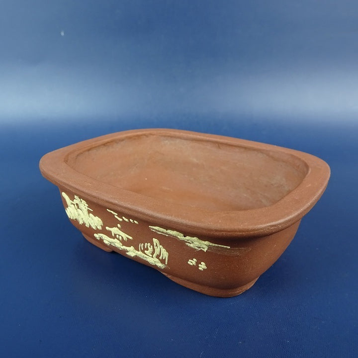中古盆栽鉢 中国宜興 小鉢 長辺 約9.4cm 長方鉢 外縁 泥鉢 中国鉢 中古鉢 c1198402847