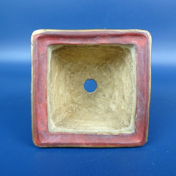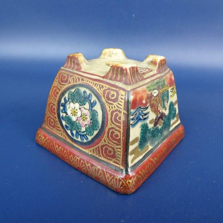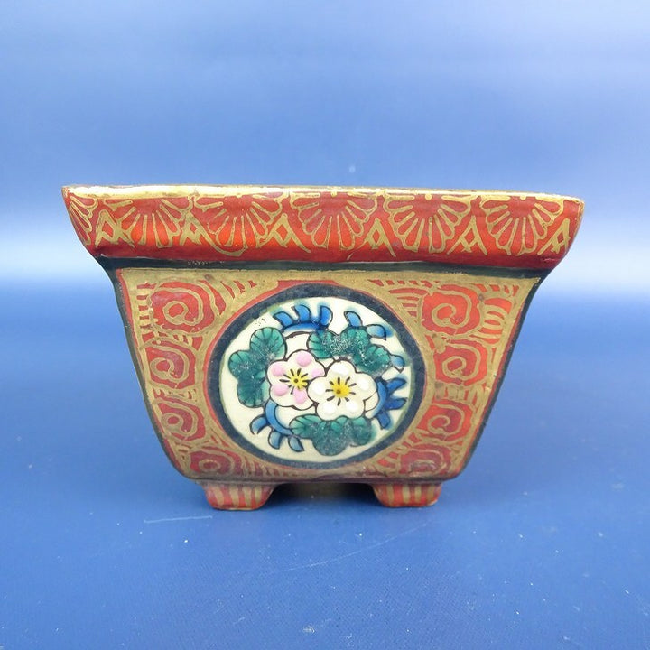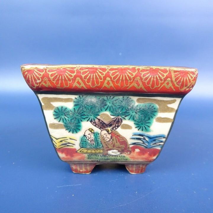 【中古】盆栽鉢 九谷庄三 小鉢 長辺 約7cm 正方鉢 絵鉢 花 人物 箱付 布付 現品 中古鉢 品名九谷庄三(箱付、布付)...