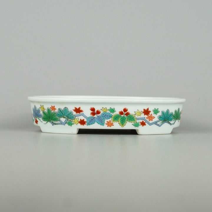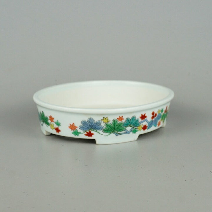 中古盆栽鉢 伊万里 真泉作 桜印有 小型 長辺 約15.8cm 楕円鉢 色絵 モミジ 紅葉 観賞用 中古鉢 o1198425766
