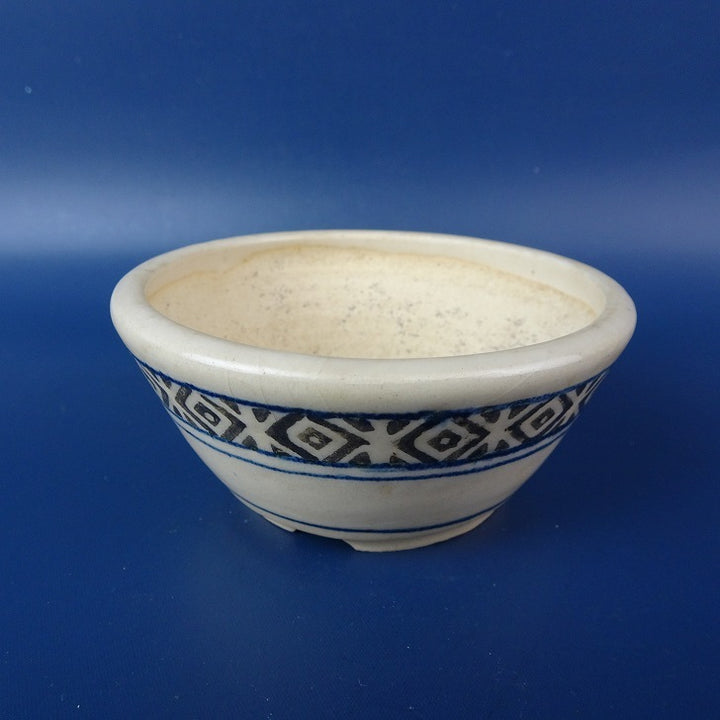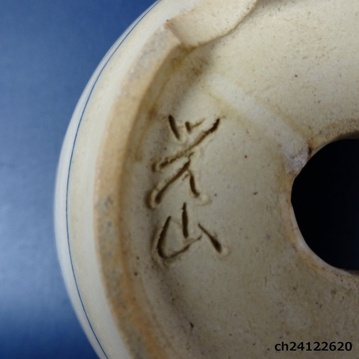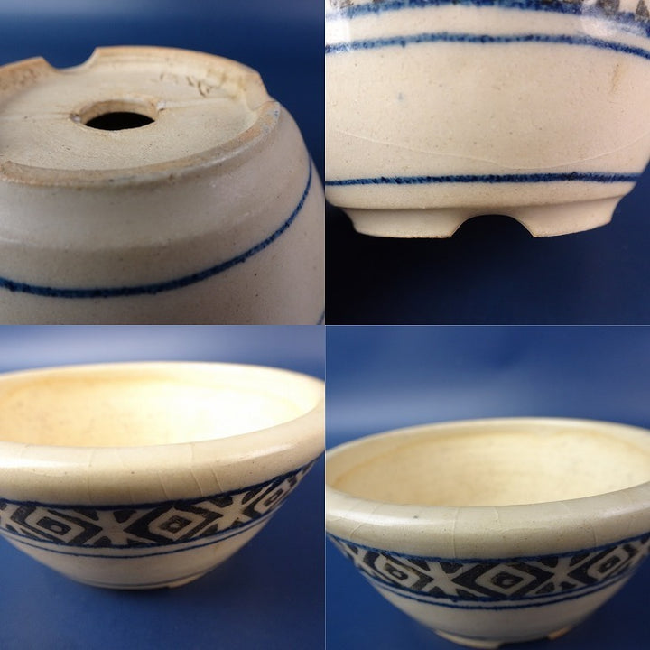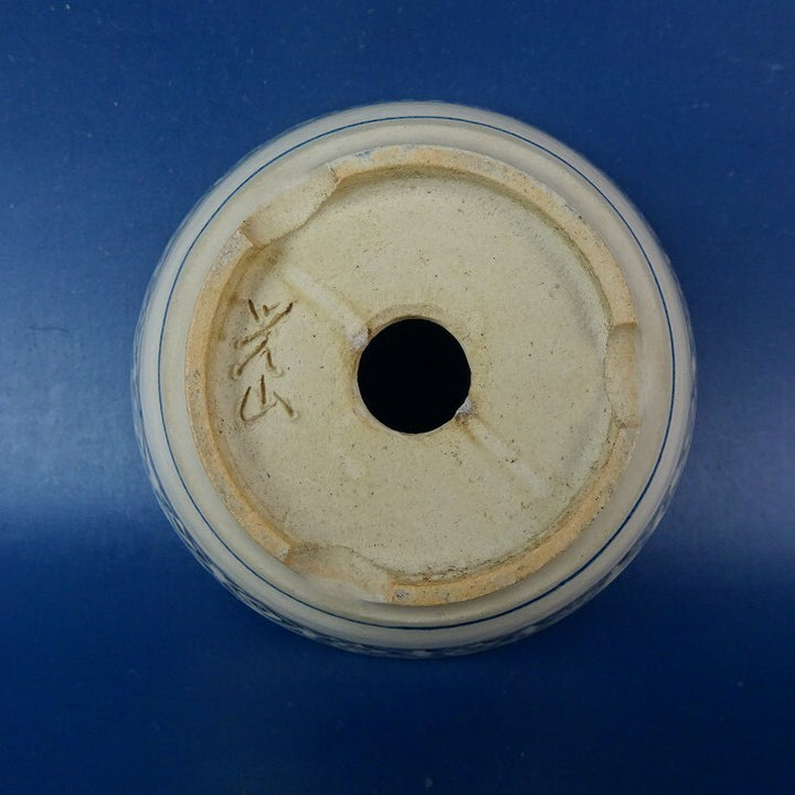 中古盆栽鉢 光山 小型 長辺 約19.3cm 丸鉢 染付 模様 釉薬 中古鉢 g1198423604