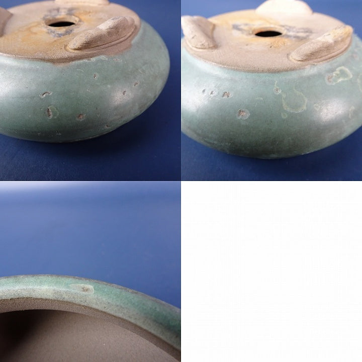中古盆栽鉢 光泉 小型 長辺 約10.5cm 丸鉢 袋式 釉薬 中古鉢 o1198421929