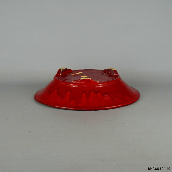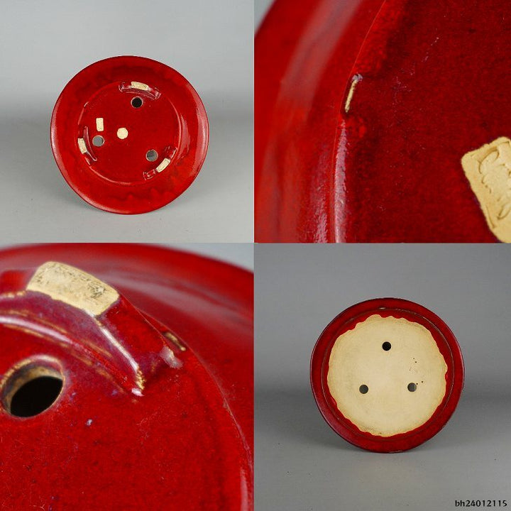 中古盆栽鉢 写楽 中型 長辺 約29.5cm 丸鉢 釉薬 中古鉢 p1198418878