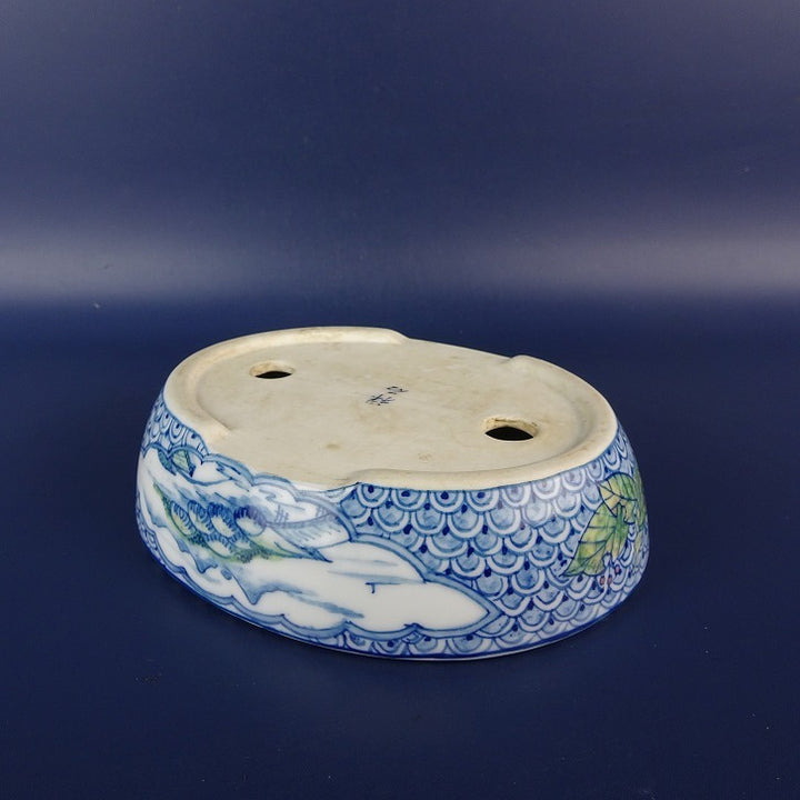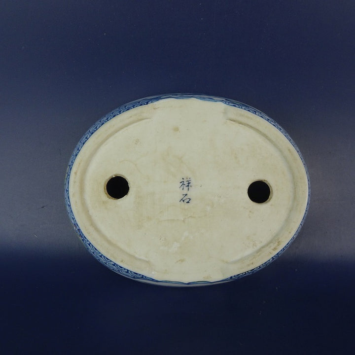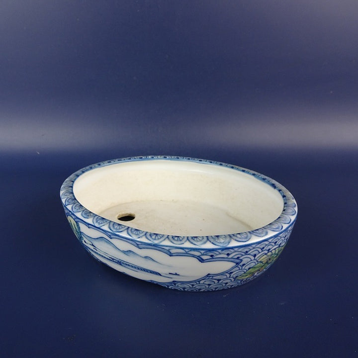 中古盆栽鉢 初代 祥石 長辺 約 13cm 楕円鉢 絵鉢 山水図 観賞用 中古鉢 v1198443503