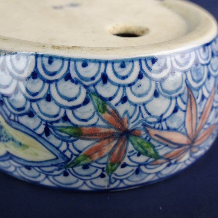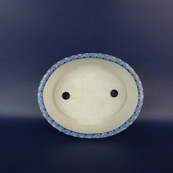 【中古】盆栽鉢 初代 祥石 長辺 約 13cm 楕円鉢 絵鉢 山水図 観賞用 現品 中古鉢 品名初代祥石...