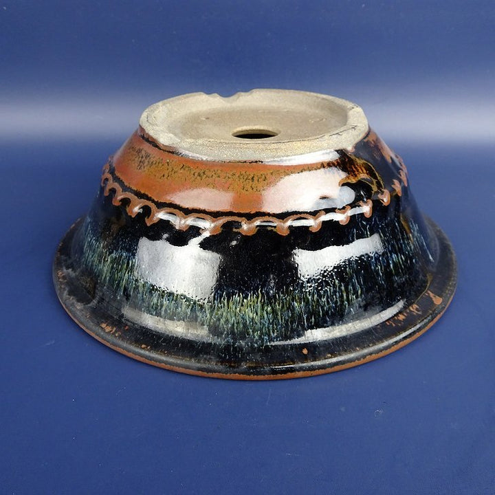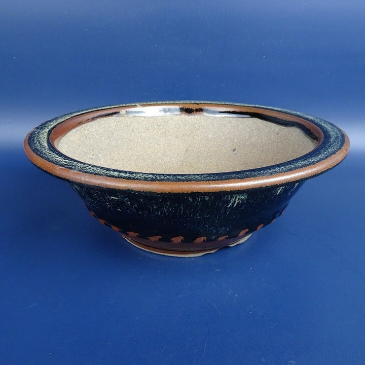 中古盆栽鉢 小石原焼 中型 長辺 約20.5cm 丸鉢 外縁 釉薬 中古鉢 k1198408333
