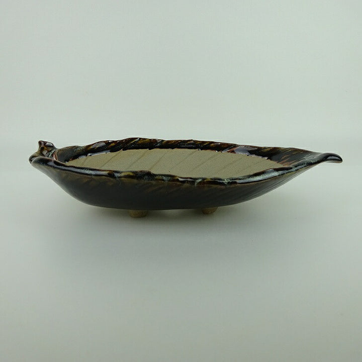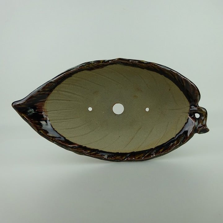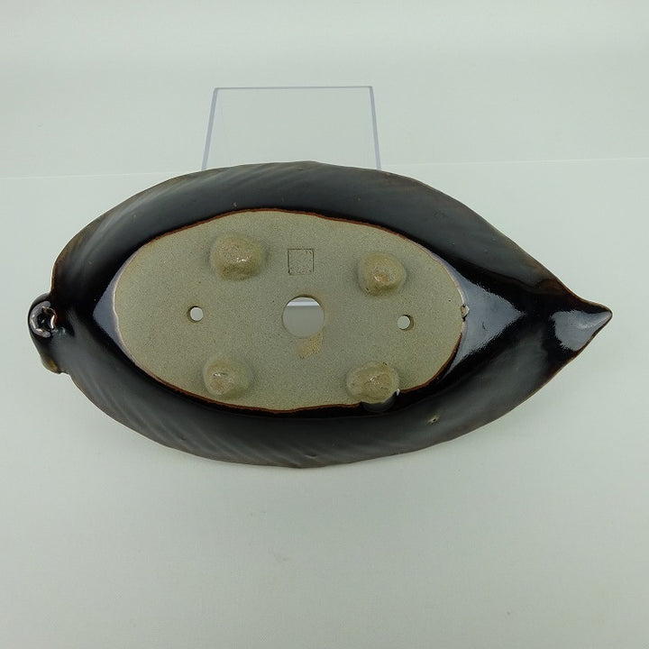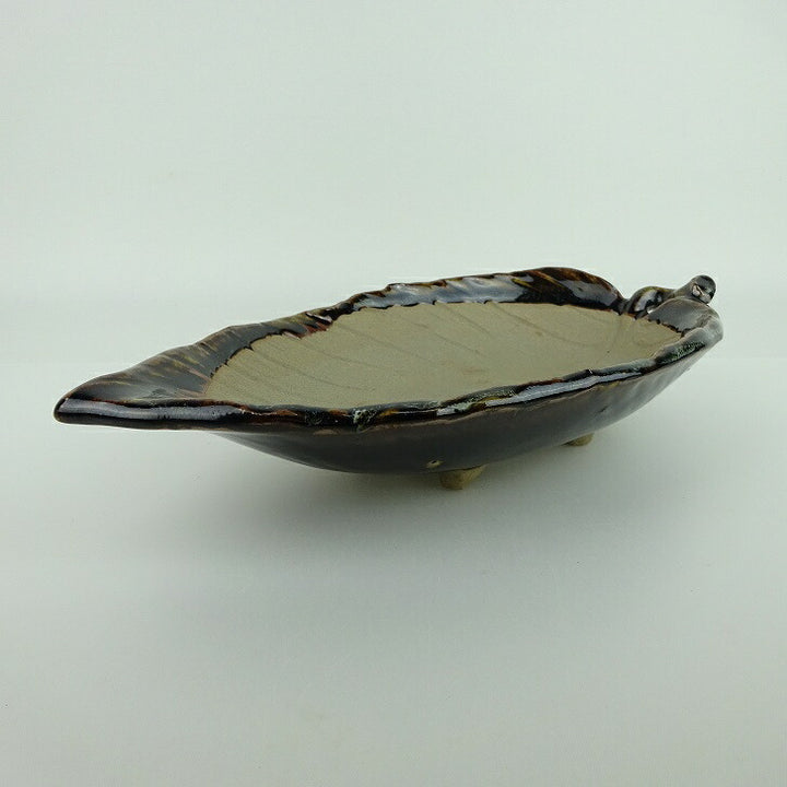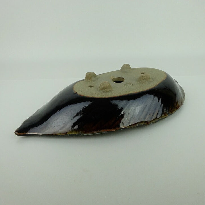 中古盆栽鉢 小石原焼 中型 長辺 約25cm 葉型鉢 釉薬 中古鉢 q1198412234