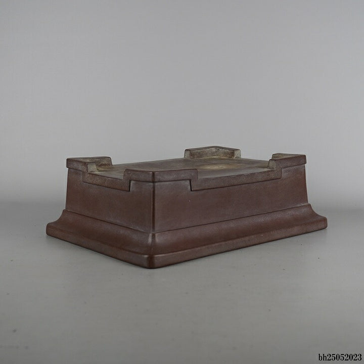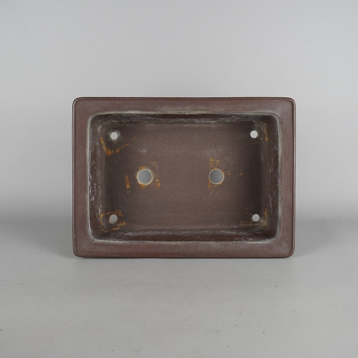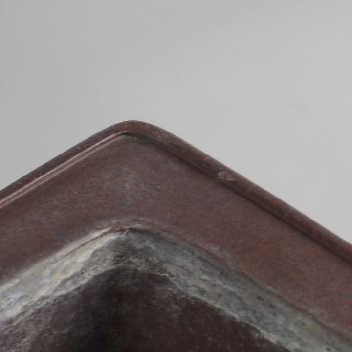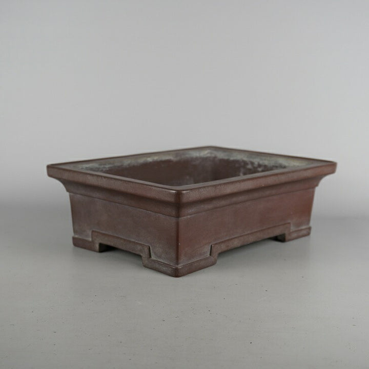 中古盆栽鉢 山秋 中型 長辺 約 31cm 長方鉢 外縁 下帯 泥物 中古鉢 r1198410112