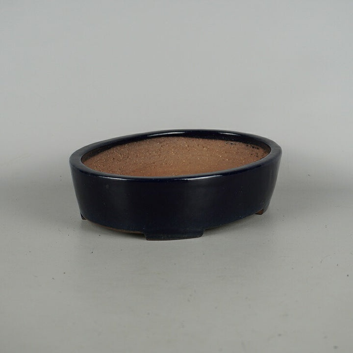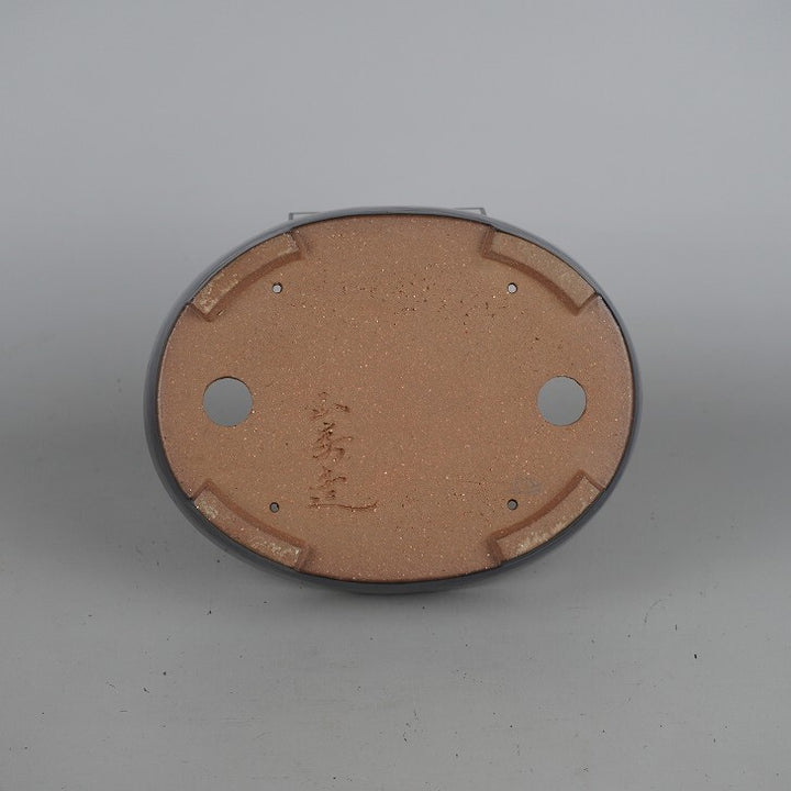 盆栽鉢 常滑 山房造 小型 長辺 約 19cm 楕円鉢 瑠璃 釉薬 現品 中古鉢 品名山房...
