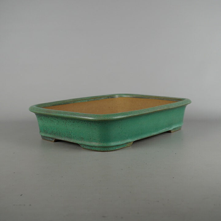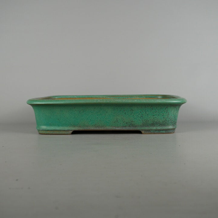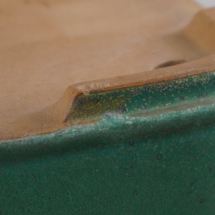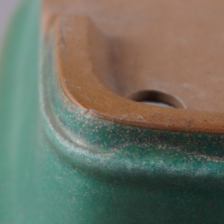 盆栽鉢 常滑 山房造 鳳舟 中型 長辺 約 34.5cm 長方鉢 縁付 下帯 釉薬 現品 中古鉢 山房造 山房鯉江製陶所 かつては押型製法による量産タイプが主体の良質で手頃な常滑色鉢として親しまれた。1980年代半ば頃からは仕上げにこだわった高級品を指向し、安定した製品を出している。型は比較的スタンダードなものを中心に釉色、大小を含めると数百種に及ぶ。釉物は瑠璃、均釉、海鼠釉、白釉などがある。 以前は量産タイプには「山房造」、高級指向製品には「山...