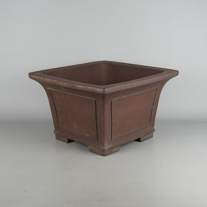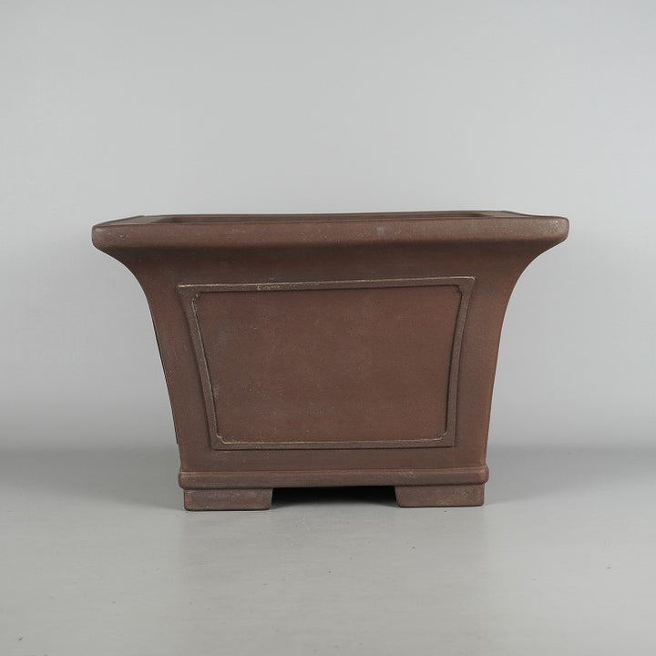 中古盆栽鉢 常滑 山秋造 松泉焼 中型 長辺 約 34cm 正方鉢 外縁 額付 下帯 泥物 中古鉢 b1198424212