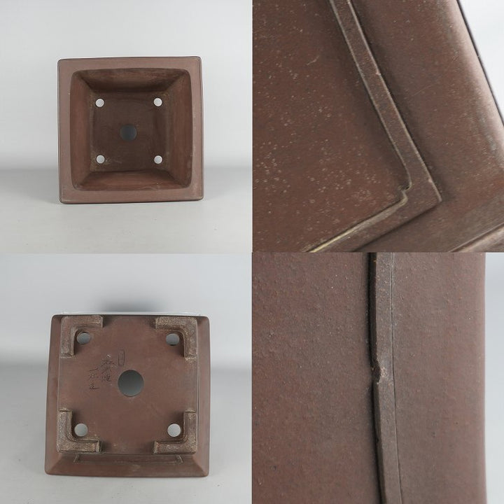 盆栽鉢 常滑 山秋造 松泉焼 中型 長辺 約34cm 正方鉢 外縁 額付 泥物 現品 中古鉢 品名山秋造 松泉焼...