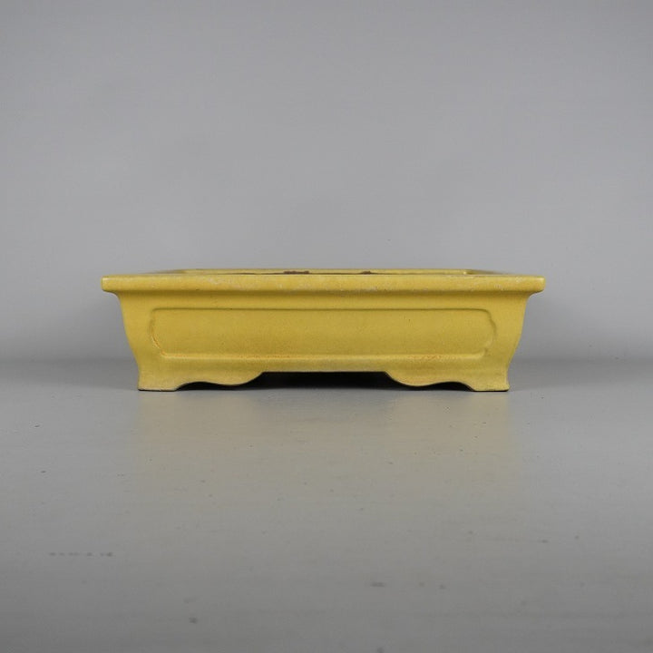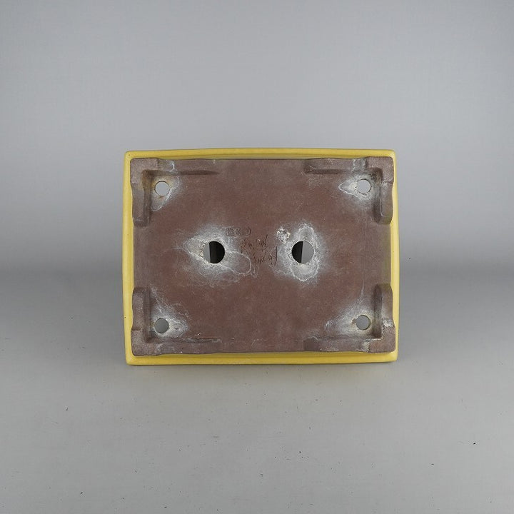 中古盆栽鉢 常滑 山秋造 松泉焼 中型 長辺 約32cm 長方鉢 窓入 黄釉 釉薬 中古鉢 e1198416009