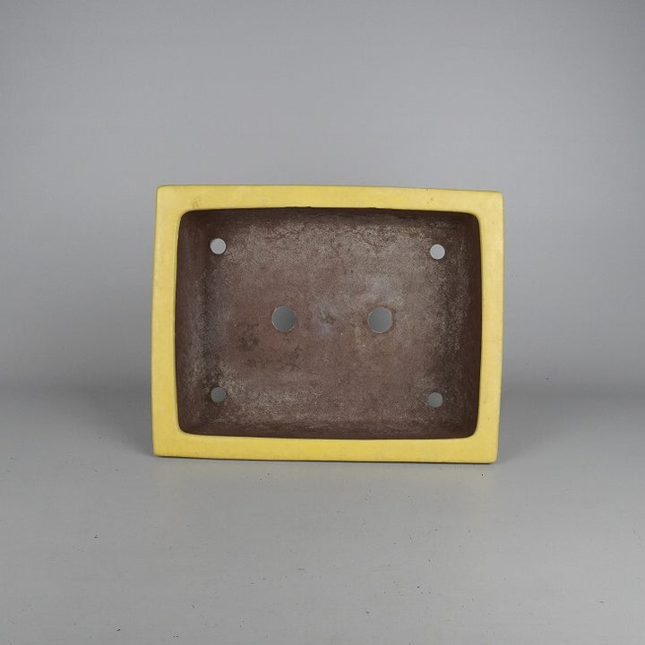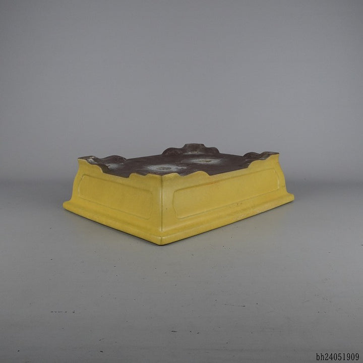 盆栽鉢 常滑 山秋造 松泉焼 中型 長辺 約32cm 長方鉢 窓入 黄釉 釉薬 現品 中古鉢 品名松泉焼 山秋造...