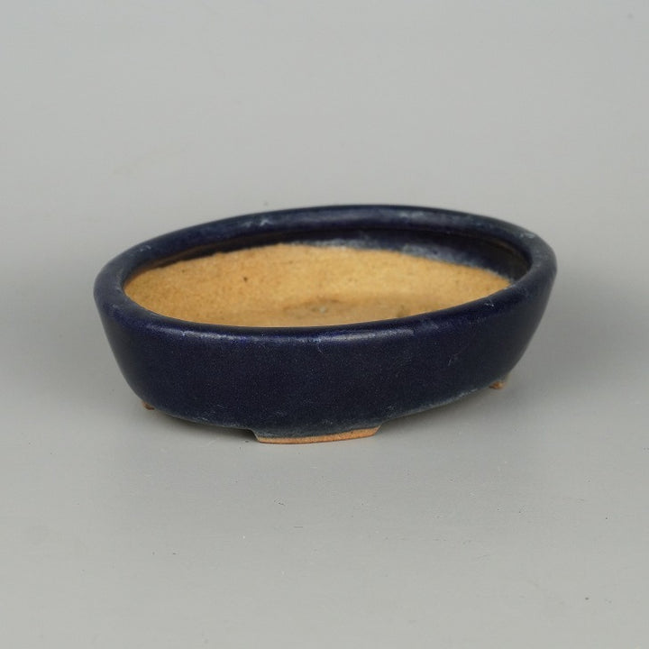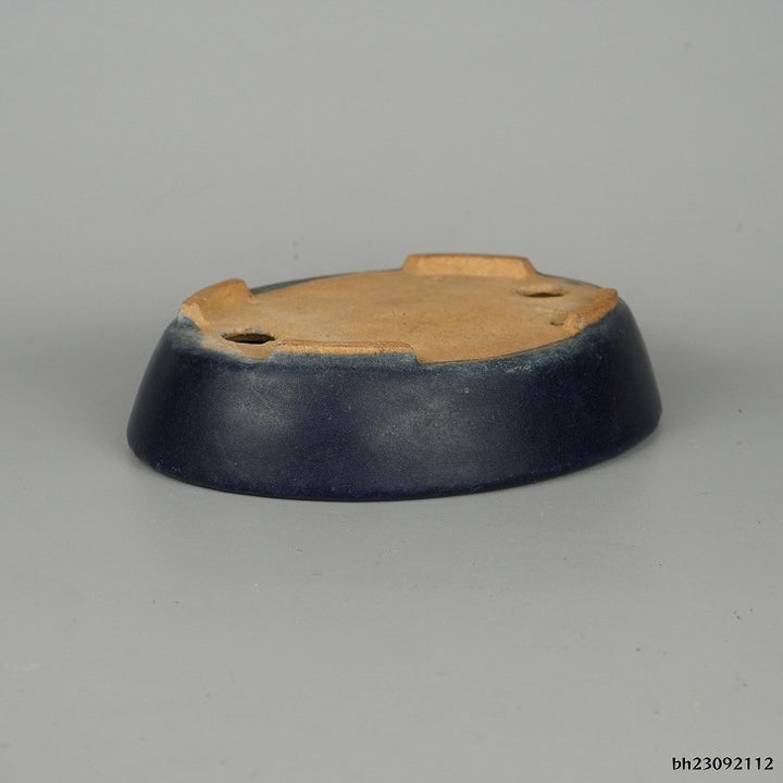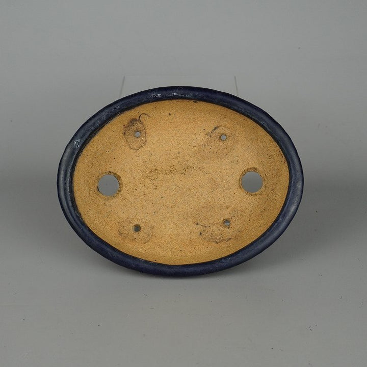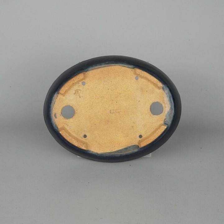 【盆栽鉢 常滑 服部造 小型 長辺 約 16.5cm 楕円鉢 瑠璃 釉薬 現品 中古鉢 服部の鉢は小鉢から大鉢まであるが、釉色小鉢主体で釉は多彩である。型に凝ることなく、一般的な正方形、長角、六角、楕円、丸など種類は豊富でほぼ全て型を用いて作られている。 釉もできるだけ均一な発色をめざし、培養に適し使いやすく樹が映える鉢を作陶。...