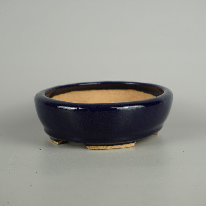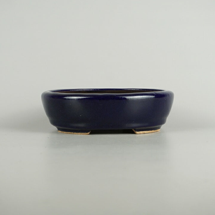 盆栽鉢 常滑 服部 小型 長辺 約 16.5cm 楕円鉢 瑠璃 釉薬 現品 中古鉢 品名服部...