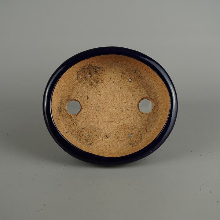 中古盆栽鉢 常滑 服部 小型 長辺 約 16.5cm 楕円鉢 瑠璃 釉薬 中古鉢 p1209290229