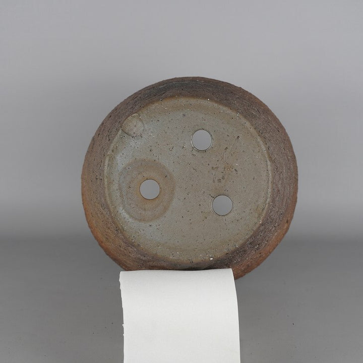 中古盆栽鉢 常滑 松下 凡才 中型 長辺 約 24.5cm 丸鉢 泥物 中古鉢 w1198407988