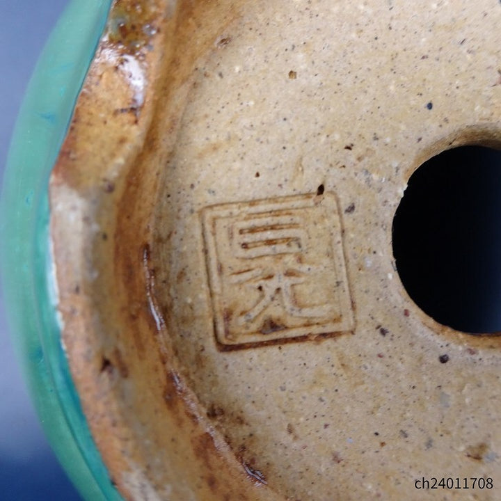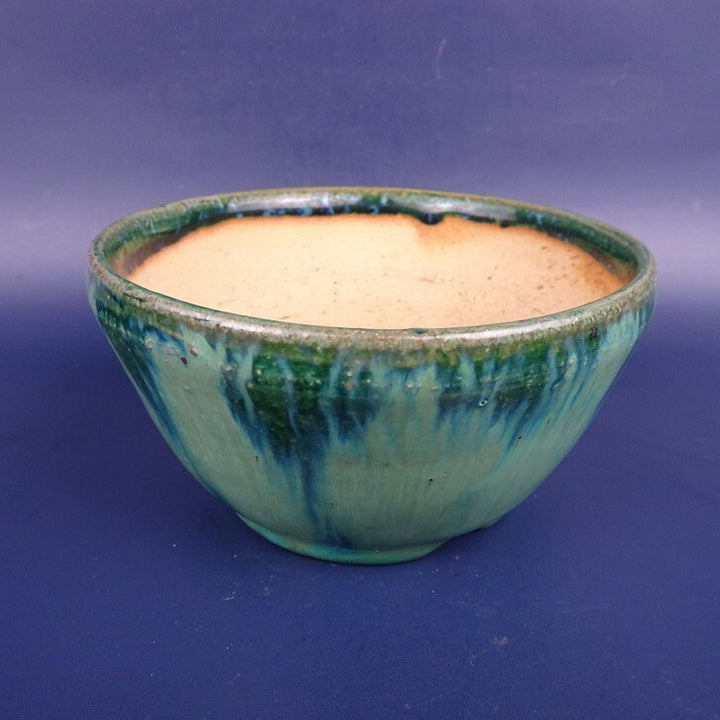 中古盆栽鉢 常滑 樹晃 小鉢 長辺 約11cm 丸鉢 釉薬 中古鉢 q1198410634