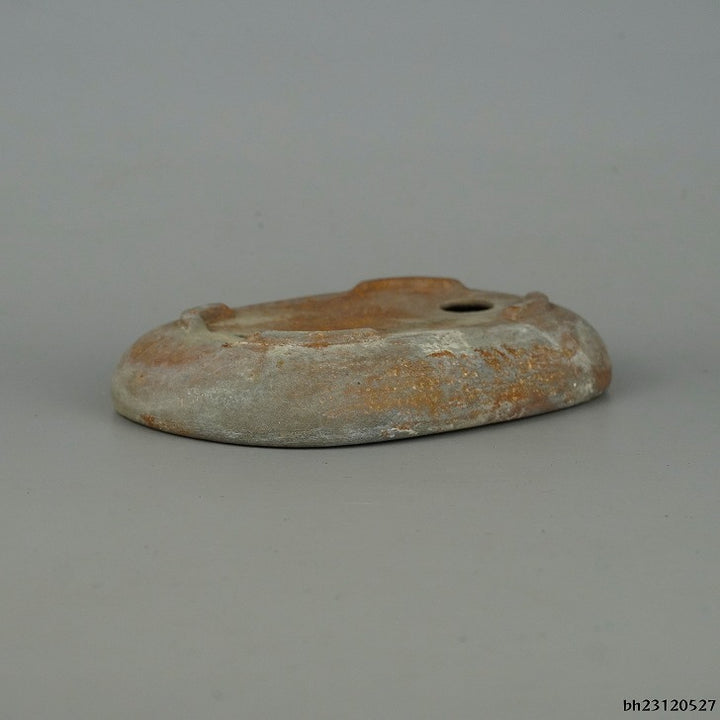 中古盆栽鉢 常滑 知 服部 小型 長辺 約 15.5cm 楕円鉢 泥物 中古鉢 m1198410369