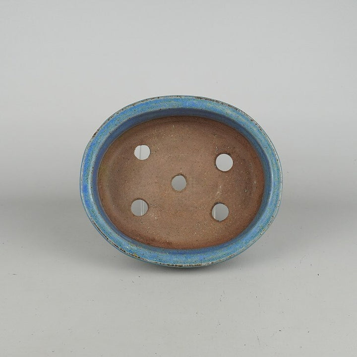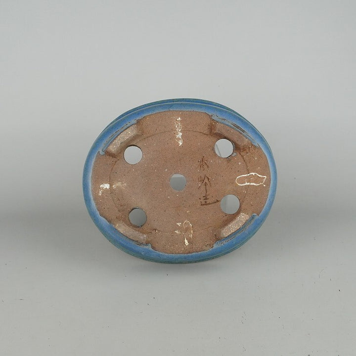 中古盆栽鉢 常滑 秀峰 義村陶園 中型 長辺 約21.5cm 楕円鉢 外縁 釉薬 中古鉢 s1198413424