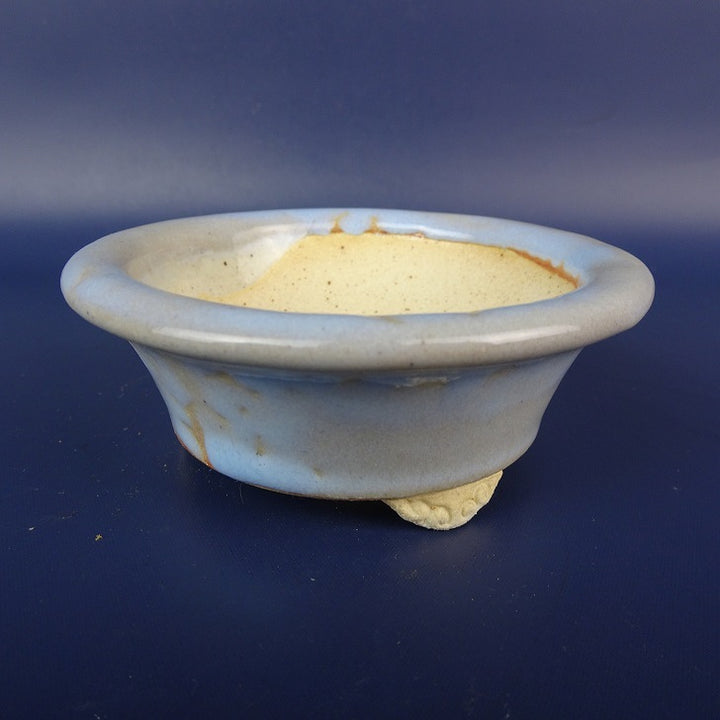 中古盆栽鉢 常滑 美芸 小鉢 長辺 約8.8cm 丸鉢 外縁 雲足 釉薬 中古鉢 v1198437183
