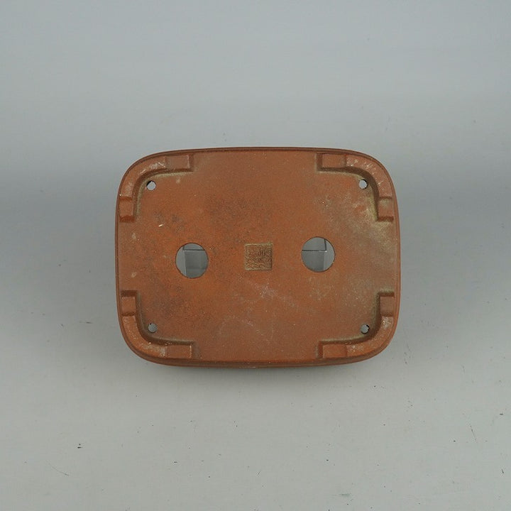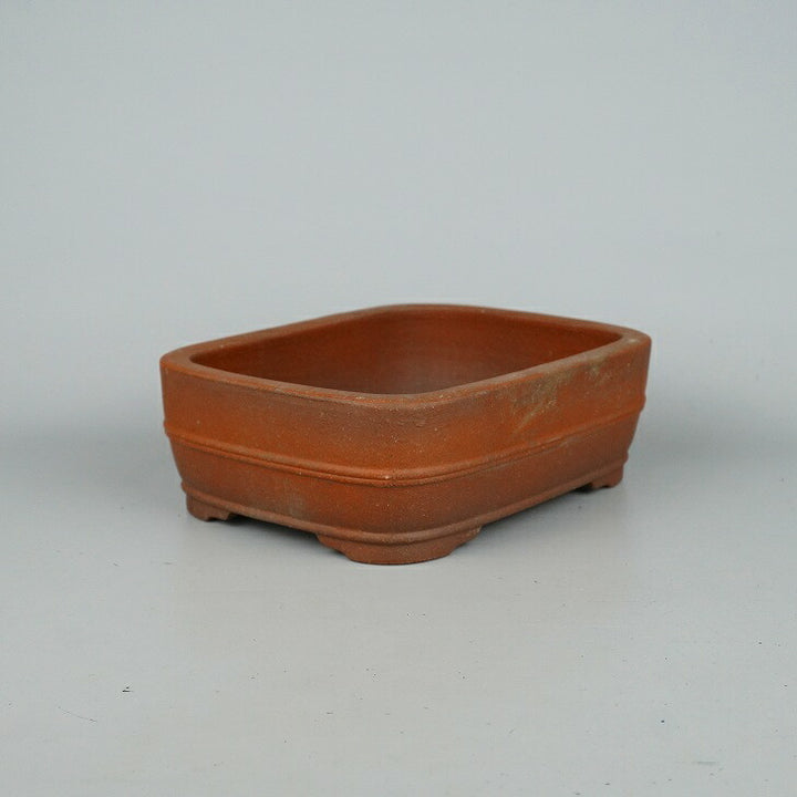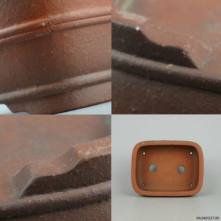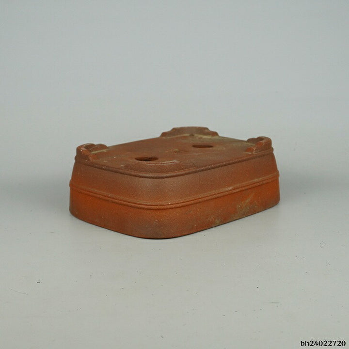中古盆栽鉢 常滑 銭号 小型 長辺 約18.7cm 長方鉢 撫角 上下帯 泥物 中古鉢 t1198403994
