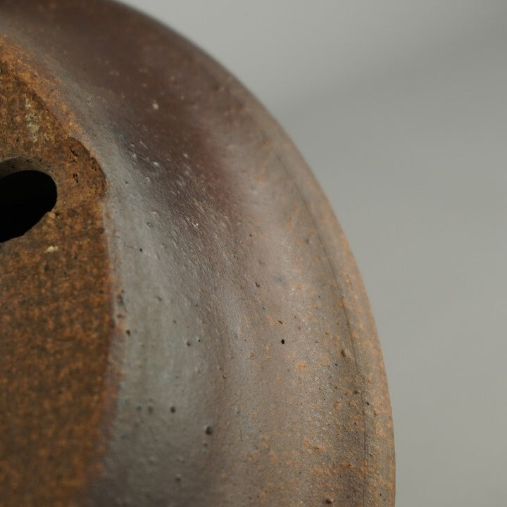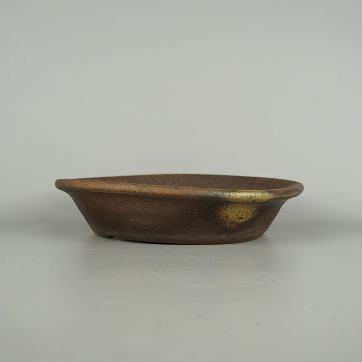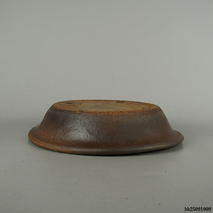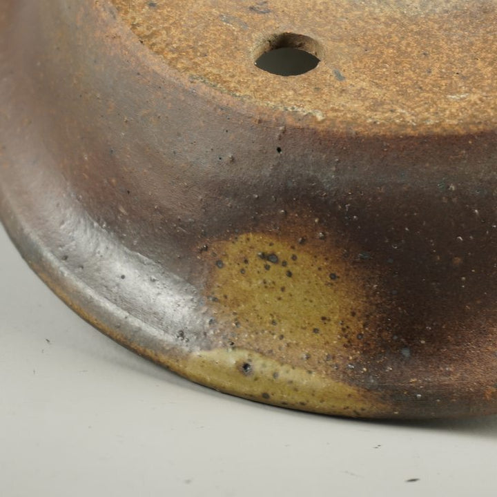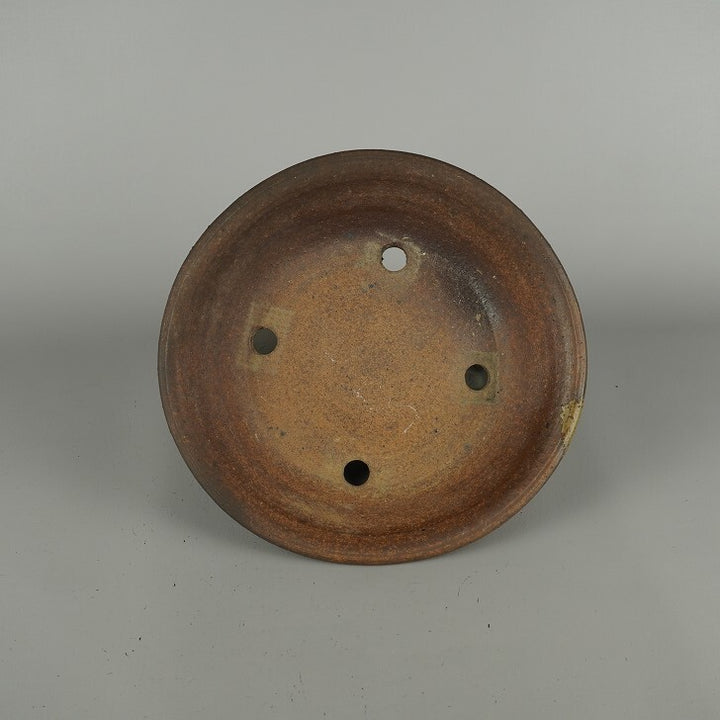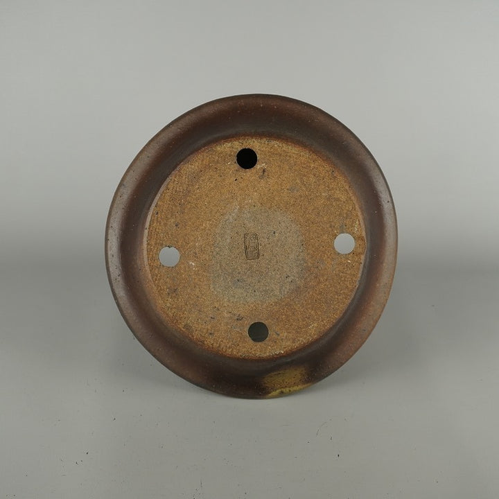 盆栽鉢 常滑 黎鳳 中型 長辺 約 25cm 丸鉢 泥物 現品 中古鉢 本名 片岡勝資 常滑では焼締陶が主体で釉色主体として制作する人が少ない中、主として釉色樹鉢や釉色水盤をつくる。中国古渡り、中渡りの白交趾、均釉再現に努め若くして定評を得る。 現在は常滑のみならず日本を代表する釉色盆器の作り手の一人である。 近年は南蛮風の焼締陶を手掛け、部分的に灰釉のかかったものなど、程よい味わいの南蛮風で人気がある。...