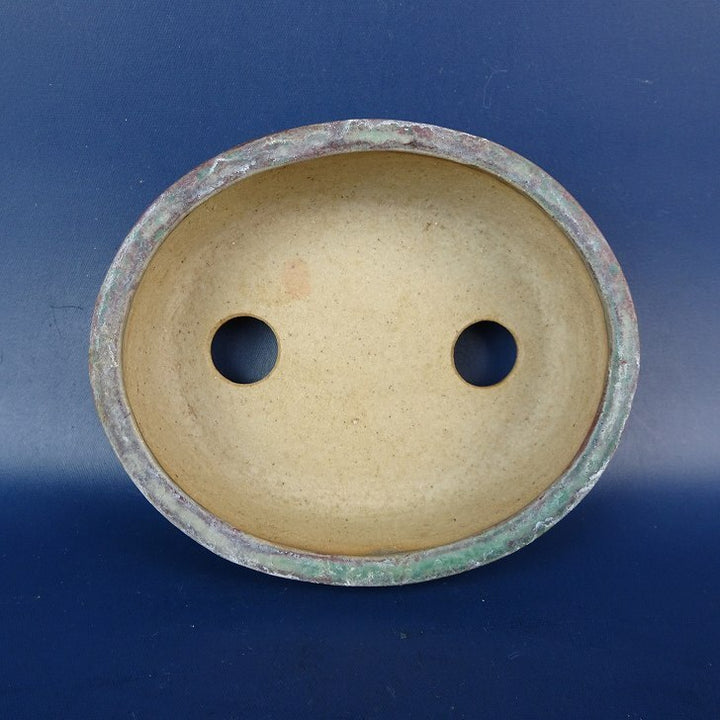 中古盆栽鉢 平安竹山 小型 長辺 約10.1cm 楕円鉢 釉薬 中古鉢 d1198420086