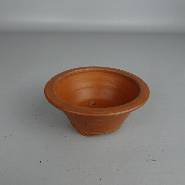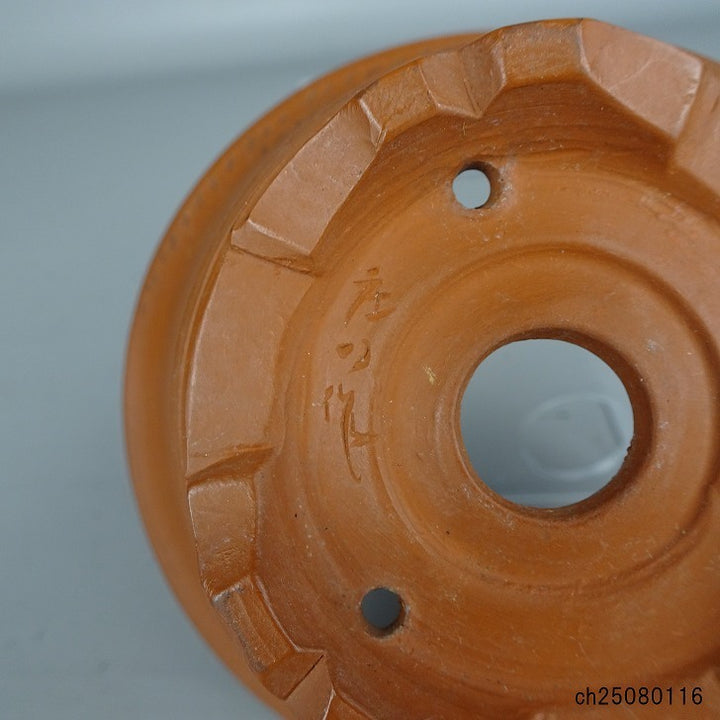 中古盆栽鉢 庄八 小型 長辺 約 10.7cm 丸鉢 下帯 彫入 風景 泥物 中古鉢 n1199272994