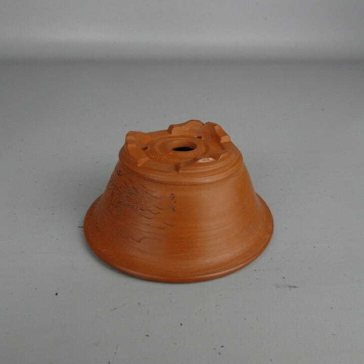 【中古】盆栽鉢 庄八 小型 長辺 約 10.7cm 丸鉢 下帯 彫入 風景 現品 中古鉢 品名庄八...