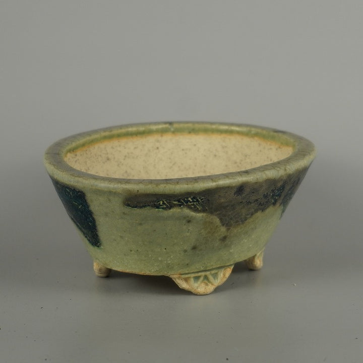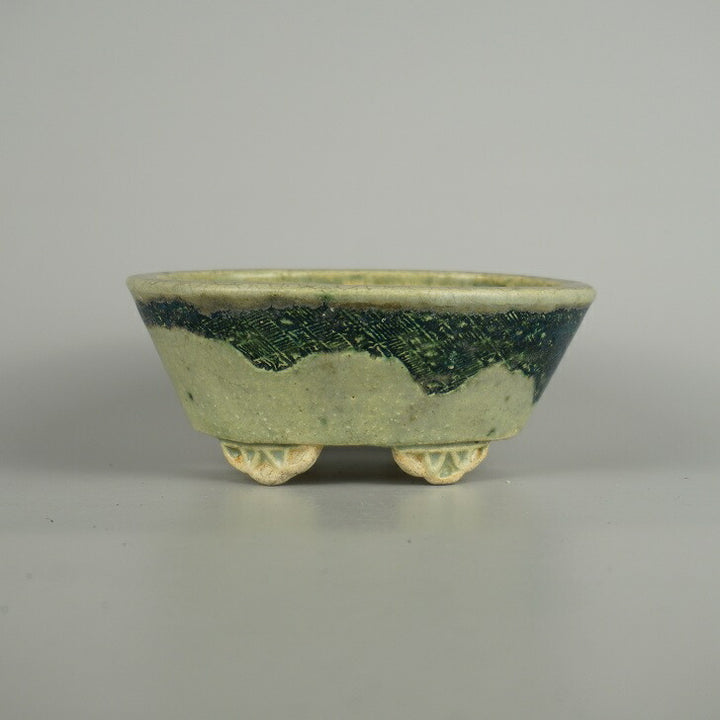 盆栽鉢 忠寛 小型 長辺 約 14.2cm 楕円鉢 模様 釉薬 現品 中古鉢 品名忠寛...