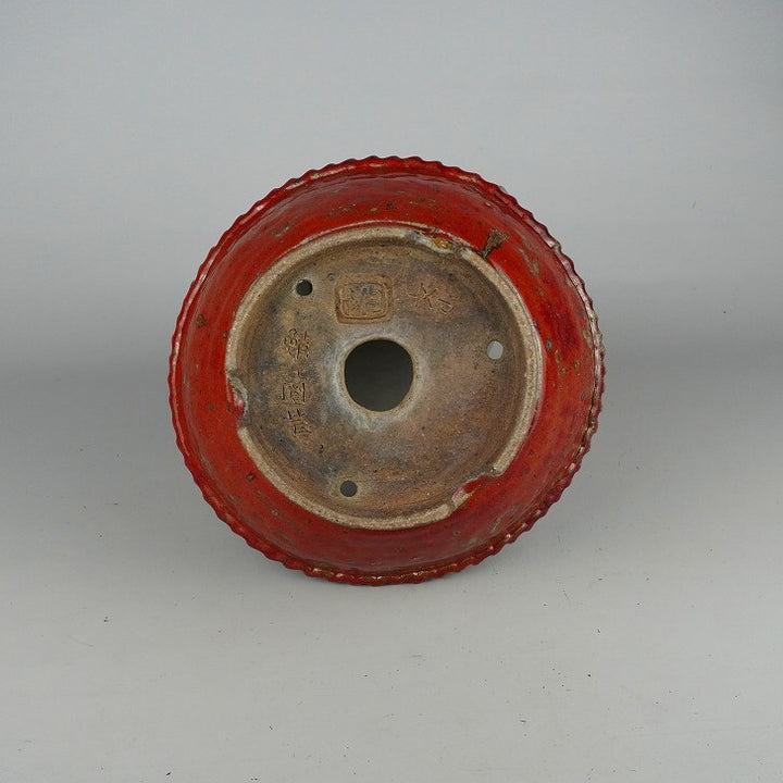 盆栽鉢 文山 越前文山 中型 長辺 約23.5cm 丸鉢 釉薬 現品 中古鉢 越前文山 1973年に鯖江園芸を開園する。 地元に伝わる越前焼に則って独自の作風を確立し、手びねりによる焼締の他、辰砂などの釉薬や象嵌を施したものがある。...