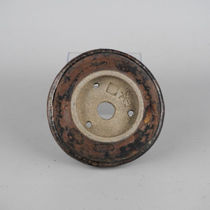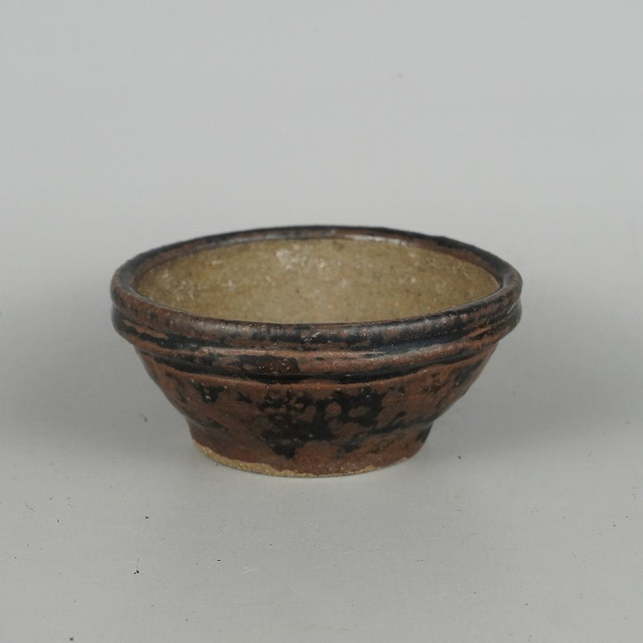 盆栽鉢 文山 越前文山 小型 長辺 約12cm 丸鉢 釉薬 現品 中古鉢 越前文山 1973年に鯖江園芸を開園する。 地元に伝わる越前焼に則って独自の作風を確立し、手びねりによる焼締の他、辰砂などの釉薬や象嵌を施したものがある。...