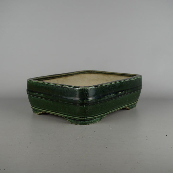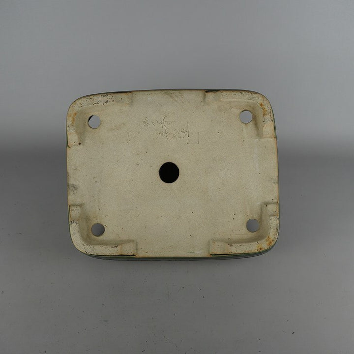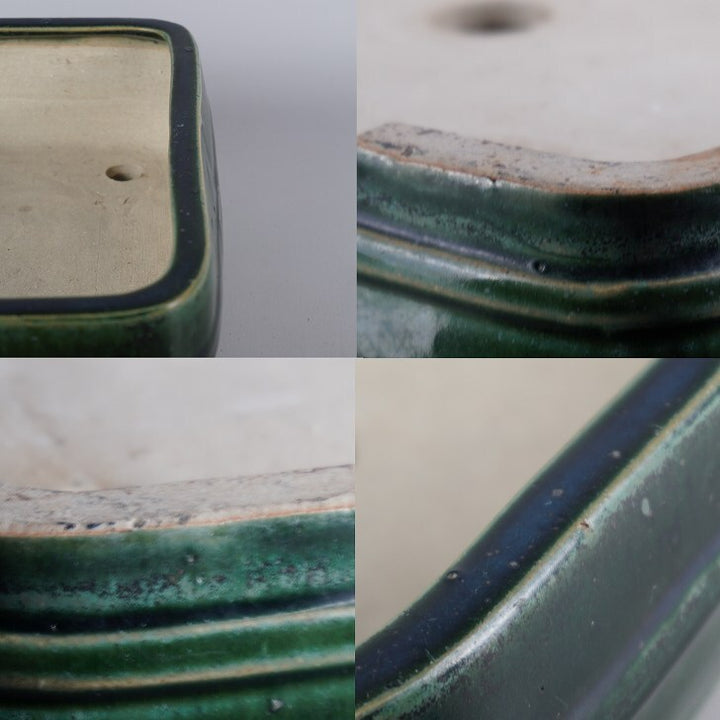 盆栽鉢 春松 緑巳斎 中型 長辺 約 30.5cm 長方鉢 中下帯 釉薬 現品 中古鉢 品名春松 緑巳斎...