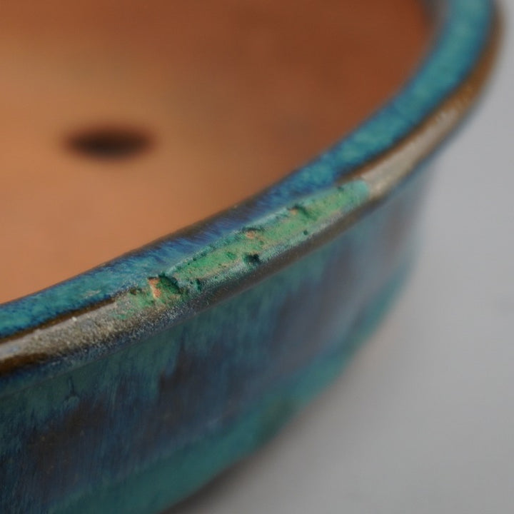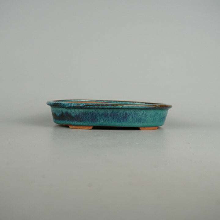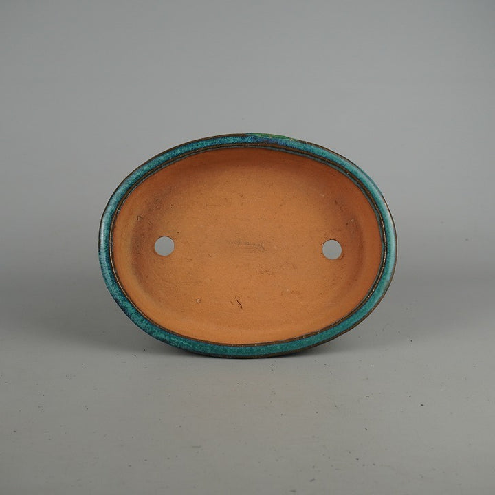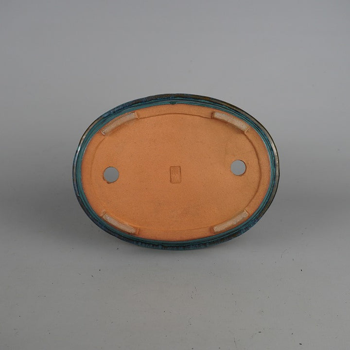 中古盆栽鉢 景仙 中型 長辺 約 20.8cm 楕円鉢 縁付 釉薬 中古鉢 q1198412233
