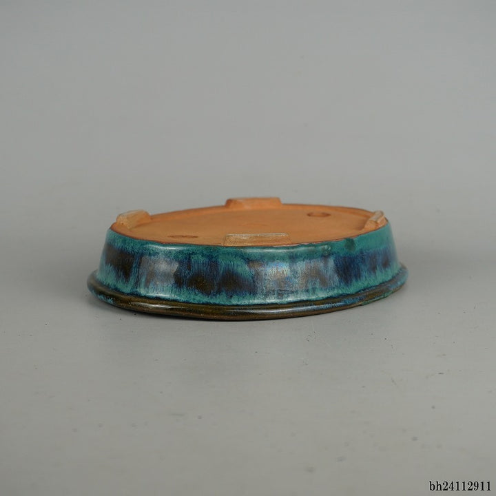 盆栽鉢 景仙 中型 長辺 約 20.8cm 楕円鉢 縁付 釉薬 現品 中古鉢 品名景仙...