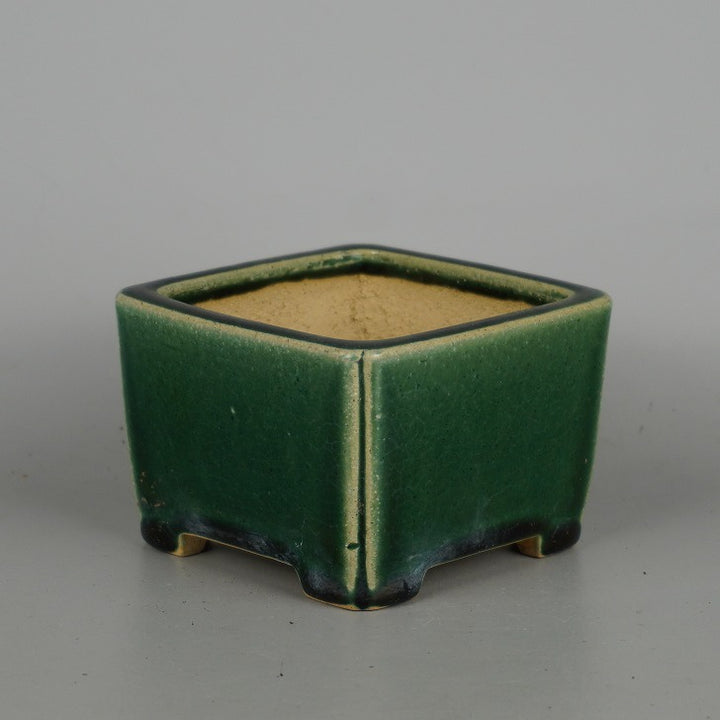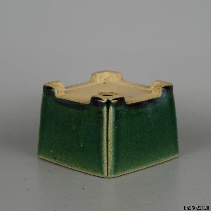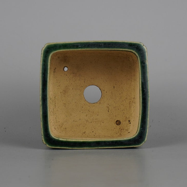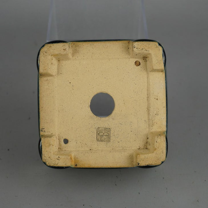 中古盆栽鉢 柴勝 小型 長辺 約 10cm 正方鉢 隅入 釉薬 中古鉢 1198400998