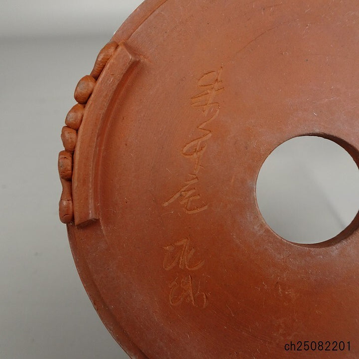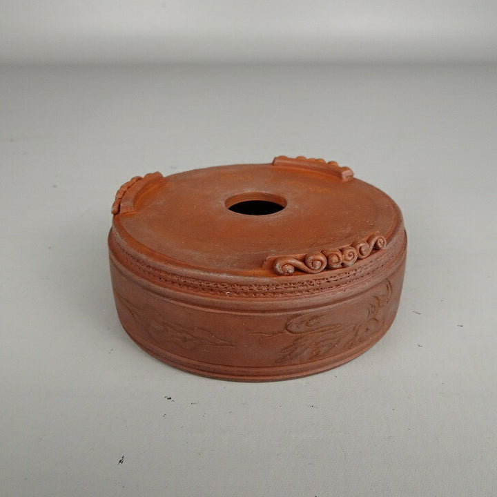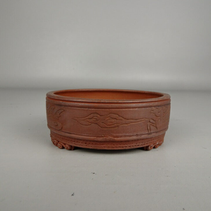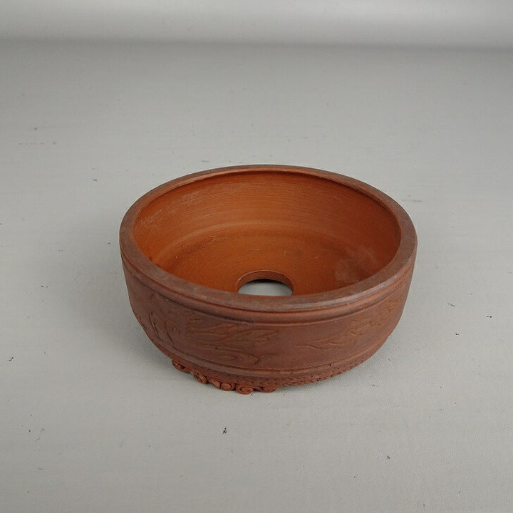 中古盆栽鉢 泥珠 小鉢 長辺 約 8.4cm 丸鉢 雲足 釘彫 泥鉢 中古鉢 k1205011976
